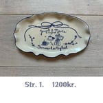 Personlige fade på bestilling. Priserne ligger fra ca 1200kr og op til 4000kr.